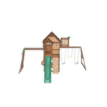 El columpio está hecho de cedro 100%. Con una estructura de nudos pequeños y compactos, es menos probable que su madera desarrolle pequeñas grietas que emanen de los nudos. En pruebas de laboratorio, nuestra madera de cedro duradera demostró ser resistente a la putrefacción y altamente resistente a la descomposición natural. Toda la madera está pre-teñida para una apariencia lisa y clara, y también cortada y estampada con el número de pieza para ayudar a acelerar el proceso de construcción. Es posible que se requiera perforar algunos agujeros guía.
